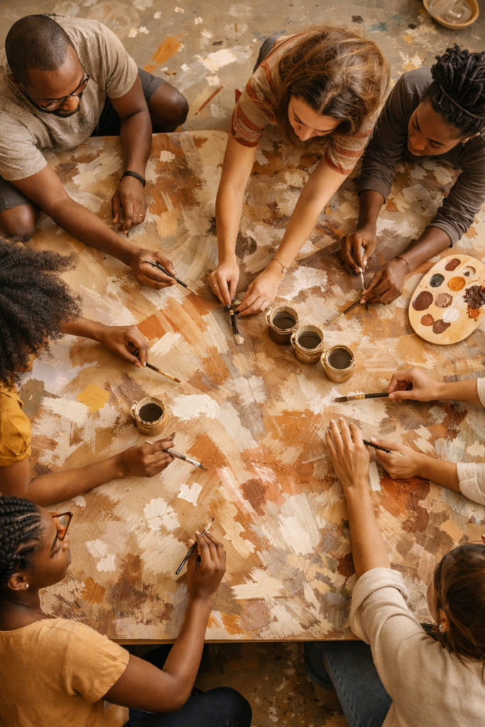Proposez à vos collaborateurs des projets artistiques sur-mesure : team-building artistique, création d’œuvres d’art directement dans vos locaux, réflexion autour de l’esthétique de vos locaux…